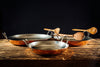 From the cooktop to the tabletop, our solid Copper Paella Pan combines the unsurpassed quality of traditional craft with the beauty of modern design. It is the perfect copper cookware to add flavor and flair to more than just paella: omelettes, crepes, vegetables, bacon, anything really.