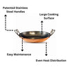 The warm glow of our heavy gauge Hammered Copper Paella Pan and the hot-tinned interior makes for the best soccarat, professional cooking performance, and dazzling displays. Fitted with our new, patented stainless steel handles, you’ll enjoy the beauty and function to a traditional classic. Not only are our handles heat resistant, they are also ergonomic and multifunctional.